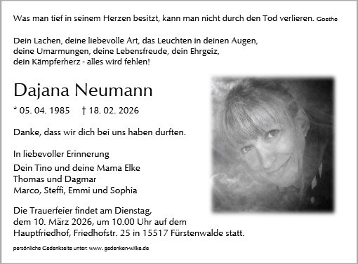 in diesen Tagen fühlen wir mit Ihnen und wünschen Ihnen von Herzen, dass Sie aus den glücklichen Erinnerungen Kraft schöpfen, um positiv in die Zukunft zu gehen. Diese Gedenkseite möge Ihnen dabei helfen, Ihre Trauer zu teilen und das Andenken gemeinsam wachzuhalten.