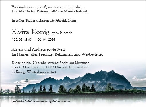 Frau Elvira König geb. Pietsch