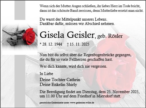 Frau Gisela Geisler geb. Rösler