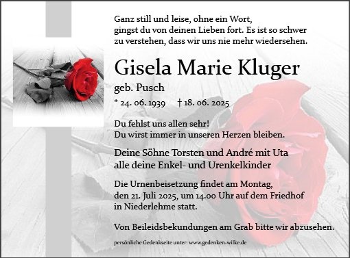 Frau Gisela Kluger geb. Pusch