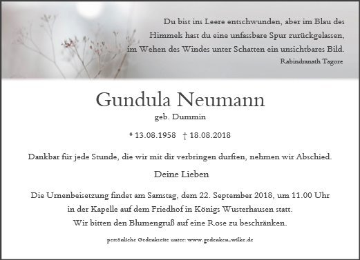 Meine Liebe Gundy, eben habe ich erst erfahren, dass Du nicht mehr auf dieser Welt bist. Ich bin unfassbar traurig, geschockt und bedaure es so, Dich nicht mehr gesehen und gesprochen zu haben. Du warst und wirst es immer bleiben, meine längste und wichtigste Freundin. Du fehlst....