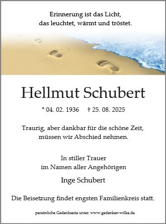 Ich wünsche seiner Familie viel Kraft,um den Verlust zu begreifen und ohne ihn ,weiter zu leben.In Dankbarkeit,dass ich ihn kennenlernen durfte , verbunden mit Wünschen für Frau Schubert und Sohn