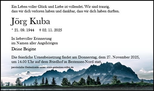 wir wünschen Ihnen von Herzen viel Kraft, dass Sie Menschen um sich haben, die Ihnen in dieser schweren Zeit beistehen und Halt geben. Zusätzlich können Sie auf dieser Gedenkseite Erinnerungen teilen und so das Andenken gemeinsam wachhalten.