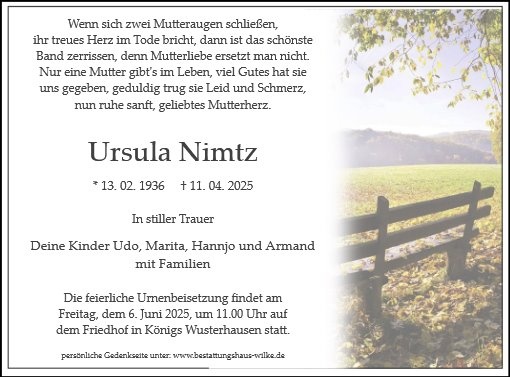 Frau Ursula Nimtz geb. Mielke