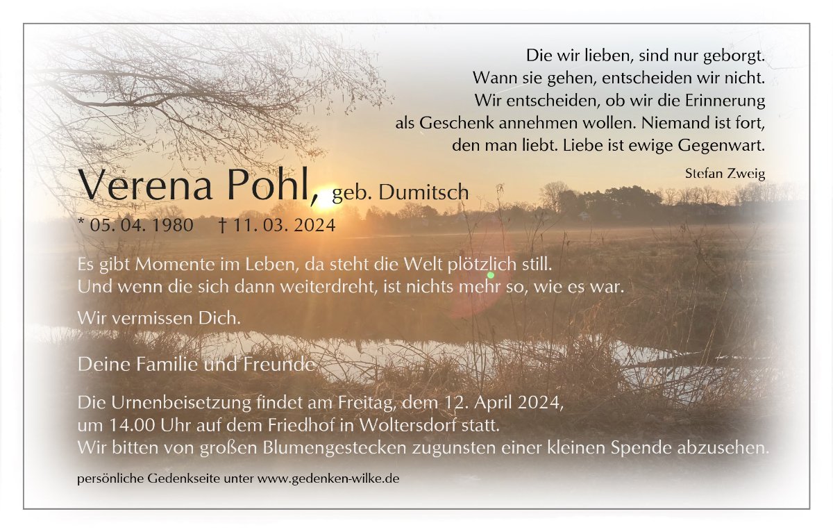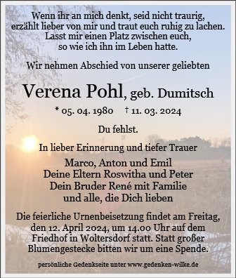 Frau Verena Pohl geb. Dumitsch